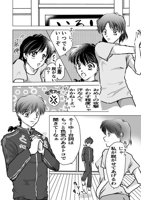 乱あ漫画。 完結させたはずのシリーズの続きです。 2ページですが(◍•ᴗ•◍) 「ただいま」の後日④ (③の帰宅後) 二人が手合わせする一枚絵が描きたくて。 #乱あ #乱馬 #あかね