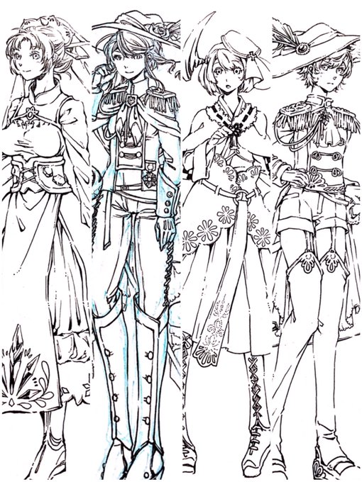 最近の落書きと次に設定画出てくる子達の線画〜