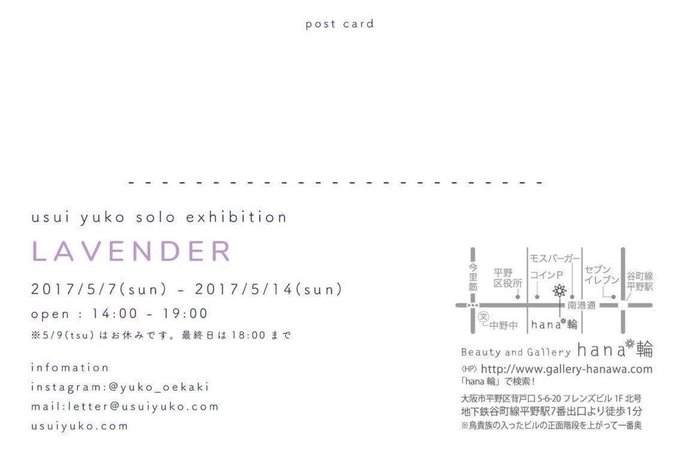🏠お知らせ〜5/1〜5/6までhana*輪休廊致します〜 🍓5/7より、うすいゆうこ個展【LAVENDER】 どうぞお楽しみに❗️