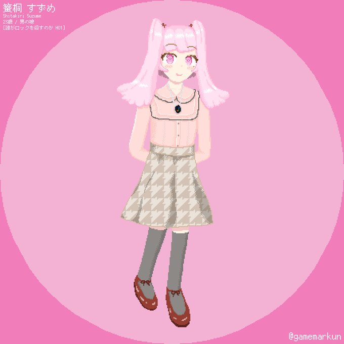 ドット絵人生の中で初めて正面以外の向きからの立ち絵を描きました...俗にいう量産型女子の服装にもこだわりながらつくれたのでとても良い経験ができました...我ながらよく頑張った...😭
