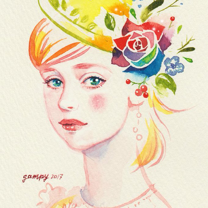 下書きの時はまったく別人であることがおわかりでしょう。笑 私の描き方の場合、下書きの線は単なるガイド線なのだ。描きすぎると絵の具が乗らなくなるので最小限にしてる。