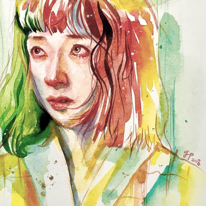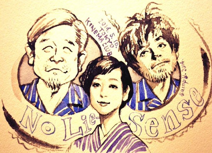 当時、テレビ番組「ミヤネ屋」でなぜか流れた私の絵 坂本美雨さんのツイートに合わせて描いたもので、故・大島渚監督と坂本龍一さんがカヌーに乗っている図。