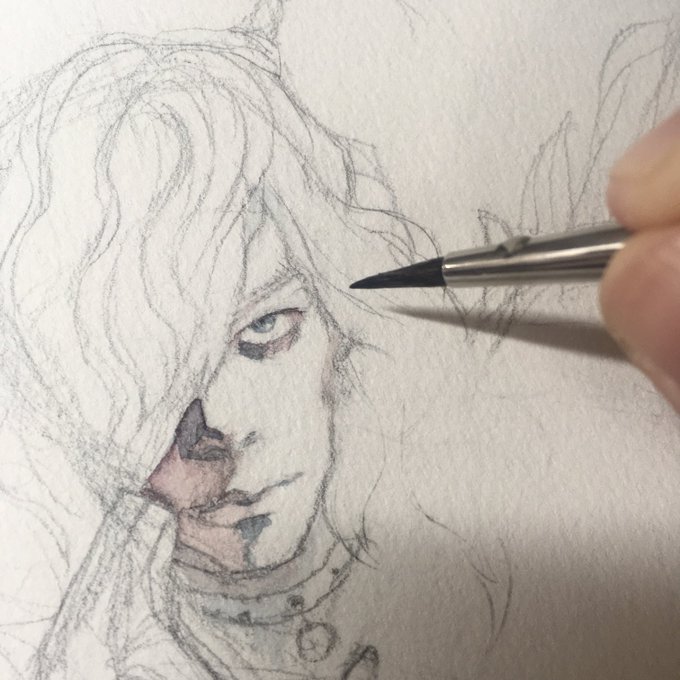 今日のお絵描きの楽しかった箇所はココだな。髪、耳、モミアゲ、襟足。