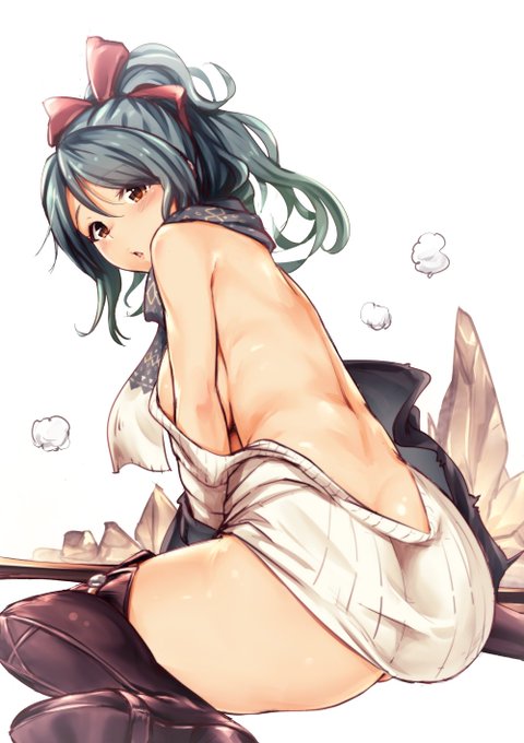 ヘリアさんのセーターは背中見えていてほすぅい
