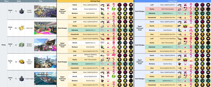 - Nice to see splatling mains in the finals, good variety of anchors in Top 8 tbh