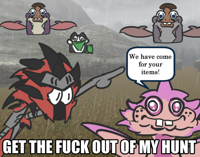 honorable mentions: also i cannot find the one of the deviljho i drew that goes "he fucking that shit up! eat eat eat!" i swear i drew something like that
