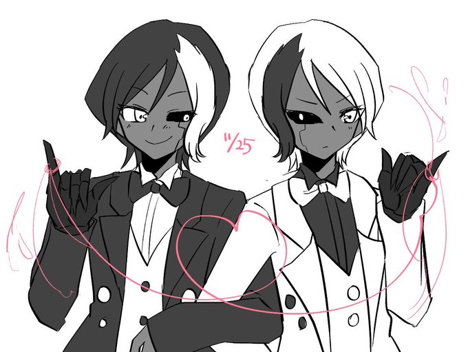 良い双子の日は赤きエンザの双子を描くやつ!今年も描いたぞ!やっぱこの双子はいいんだよな