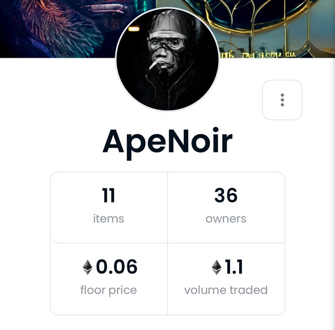 I am also on @opensea with a couple of collections, especially my Apenoir collection is my main project, a long term run, where I am developing lore of an ape world, trying to approach the ape trend :) with a different take with unique apes.