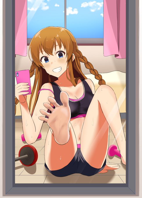 海美『足に筋肉ついてまた女子力上がっちゃったかもー!そうだ!プロデューサーに写真送っちゃおー☆』(こちらあかねさん主催の #海美脚 に寄稿させていただいたイラストです)