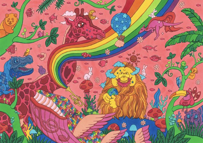 今回の個展では、久しぶりに巨大絵も展示しております! 横3メートル、縦2メートルの巨大な恐竜と一緒にぜひ記念写真を🦖 本日も在廊、お待ちしております! ---------- 個展「第18楽章」 10/22(土)〜10/31(月・ハロウィン) キャナルシティ博多・地下1階 11:00〜18:00 在廊日:27(木)29(土)30(日)31(月)