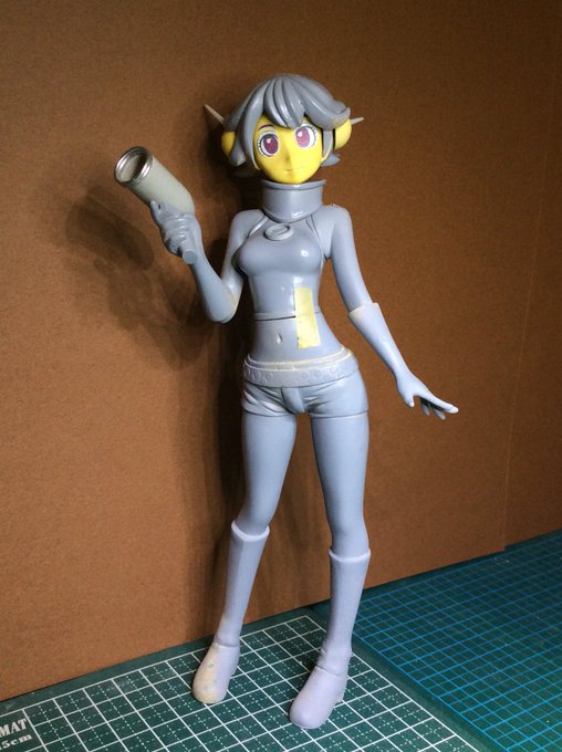今日の模型。ジロー模型レジンキット、ワンフェスマスコットのワンダちゃん。服モールドの形状把握の為に捨てサフを吹きました。パーツ分割は少なくしたいのですが、意外と付属品が多い。何とかして少なく塗り易く(特に自分が簡単に手抜きしたい!)。で他キャラの瞳デカールも修正。今日は、ここまで!