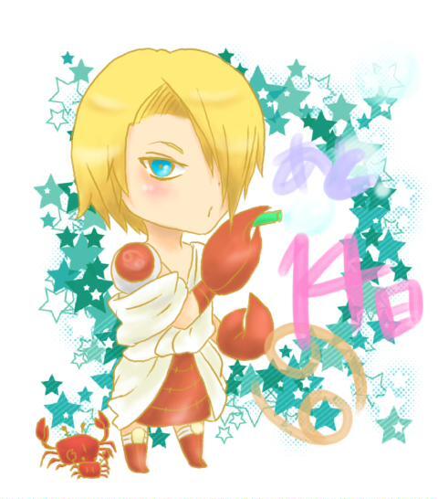 【デイ誕まであと14日】蟹座!英雄ヘラクレスが12の功業をする話は有名ですが、その中の一つ。典型的なハイブリッド怪獣、ヒドラを倒すときにヘラクレスの足を鋏んでヒドラの味方をした蟹ちゃん。結局踏み潰されちゃいます。 #チビダラ12星座