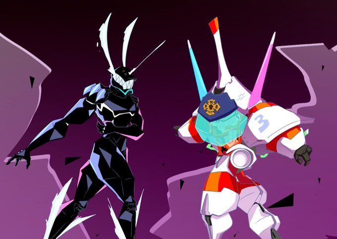 プロメア×ポケモン剣盾らくがき カラーリングの既視感が半端なかったので。