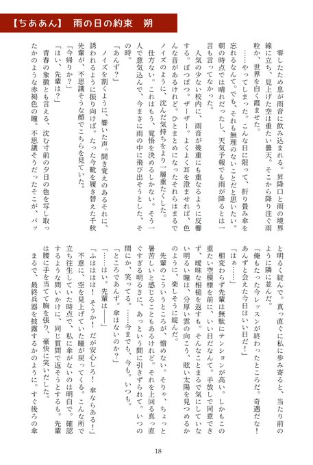 7/21のbrilliantdays20にて頒布する合同誌です。(1/2) 雨をテーマにしたお話です。 【西4ホール S23a】 とらふゆさん。 「雨空の下、君とふたり」 A5/42P/700円