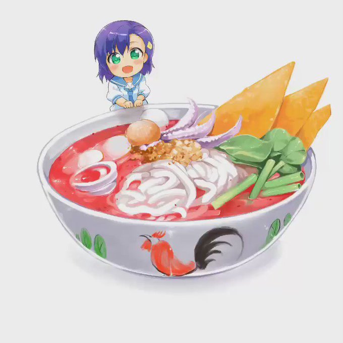 センプラーイェンタフォーを描いてみました。 イェンタフォーは赤いスープ。センプラーとは魚から作った麺。 ネットで調べてみたら、日本にも「魚素麺」っていうのがあるですね。