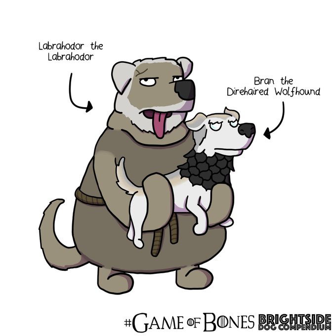 Bran is a Direhaired Wolfhound who likes standing and staring at people. I say standing... his back legs are a bit iffy so he gets carried around by a lovely Labrahodor. Or at least he used to... sorry, I can't think about that. #GameOfBones #GameofThrones