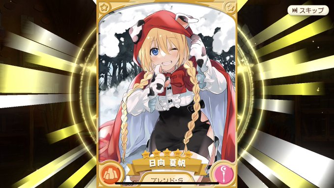 夏帆ちゃんキターーー!!!!!!!!! ほんっとかわいいな。予想以上に早く来てくれたので、クリスマス復刻に大量に石を使えますね嬉しい…!