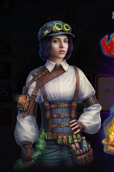 #G5 の #モノ探し 系ゲーム #HiddenCity の新イベント、コンプ特典のアバターの女子キャラ、好きだな。仕事に一途感。