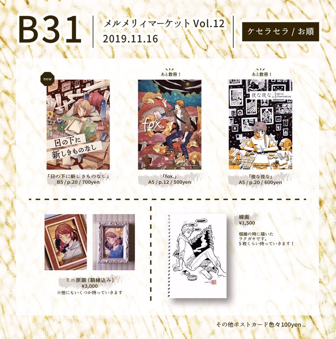 11月16日(土)メルメリィマーケットVol.12にB31で参加します!