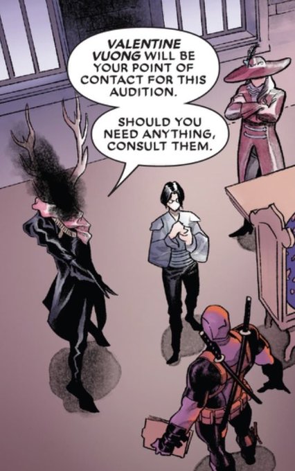 @TheBatspecter YEAH HIS LOVE INTEREST IN THE NEW DEADPOOL BOOK IS NONBINARY AND USES THEY/THEM