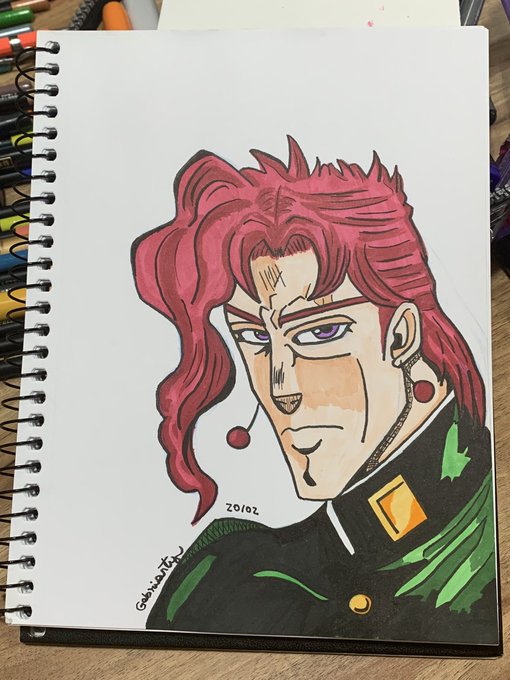 Did this Kakyoin redraw on traditional to practice the manga style 🍒💚