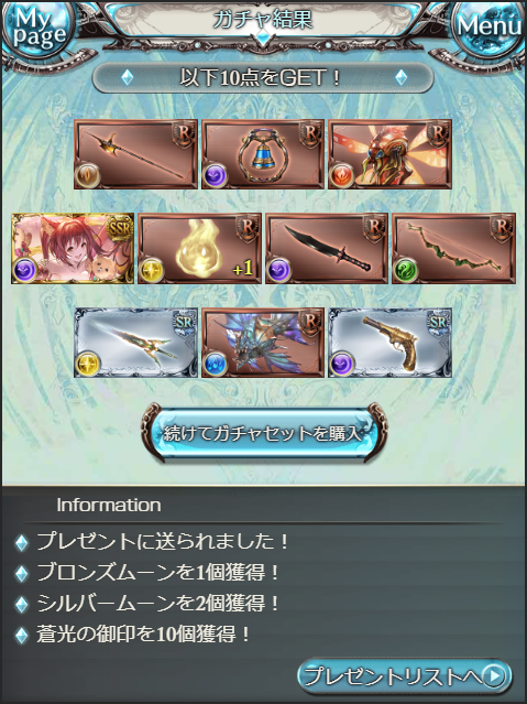 というわけでフェディエルお迎え! SSR16。持ってなかったカリオストロ引けたから、レジェフェスのリミテッドシリーズコンプ✨