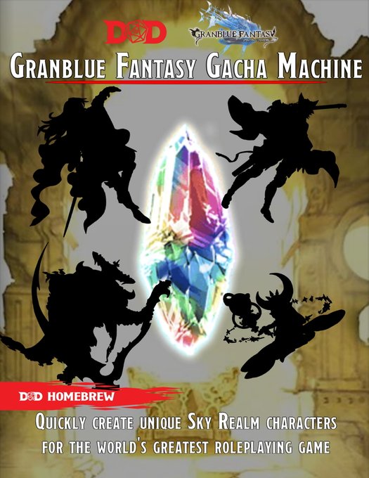 Presenting a homebrew NPC generator for the Sky Realm, the Granblue Fantasy Gacha Machine! Roll tons of dice and get randomized characters for all your NPC needs