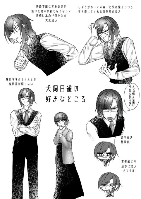 @S_umi1020 やった~ありがとう!!前送ったお兄さんにするかめちゃくちゃ迷ったが、うみちゃんの描く強気そうなお顔が好きなので日雀くん送ります!! 細かいところは描きやすいように捏造しちゃってください~!!