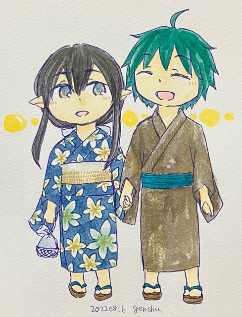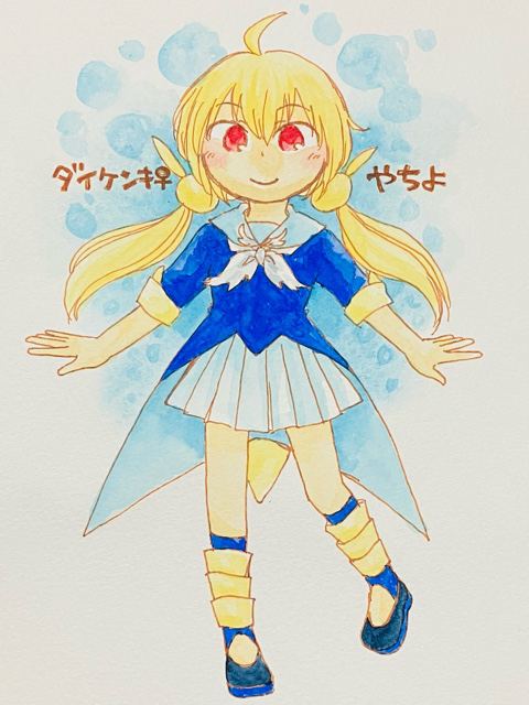 1枚目は今年春のホルベインさんの企画『水彩日和』で毎日投稿していた、くじ引きした3色で描いた妖精さんシリーズです。混色で遊ぶのと、ファンタジーモチーフが大好きです。透明水彩は相棒!!