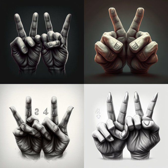 Tested a single line prompt "hands with 4 fingers and 1 thumb" to see how hands have improved thru all Midjourney versions and modes. Version 4 & Niji mode appear to be working best right now. #midjourneyAi #midjourneyV4 #midjourneyart #aiartcommunity #AIArtistCommunity #aiart