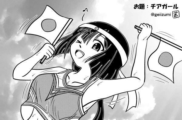 お題「チアガール」 東郷「がーんばれっ!がーんばれっ!」 風「東郷!持つものがちっがーーう!!」 #ゆゆゆ版真剣深夜のお絵かき60分一本勝負 #yuyuyu