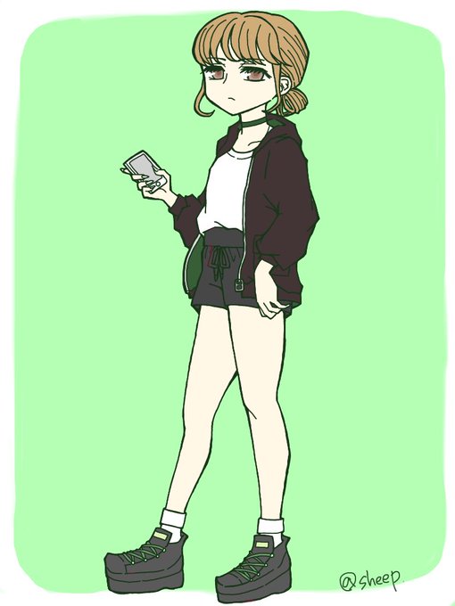 アウトドアコーデの女の子可愛いよね〜、の絵。