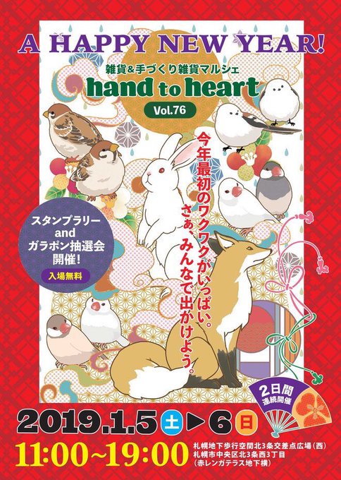 明日と明後日にチカホ北3条広場にて《hand to heart vol.76》に出展致します✨