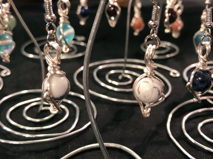閉場まであと15分ほどですが、ハウライトとソーダライトのミニチャームピアスを製作致しました✨