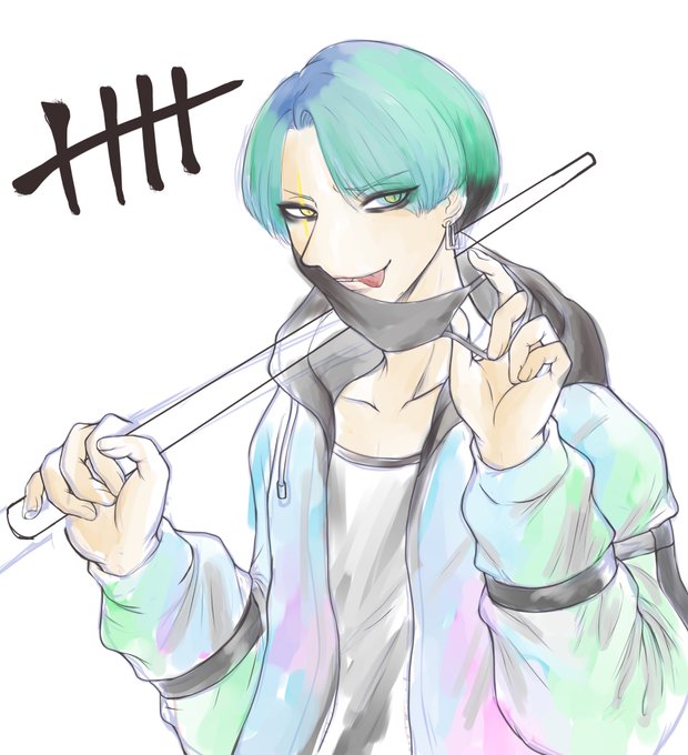 メイクがスプラのイカちゃんみたいだなと思って思わずイカ風トリスタ君描きました💜