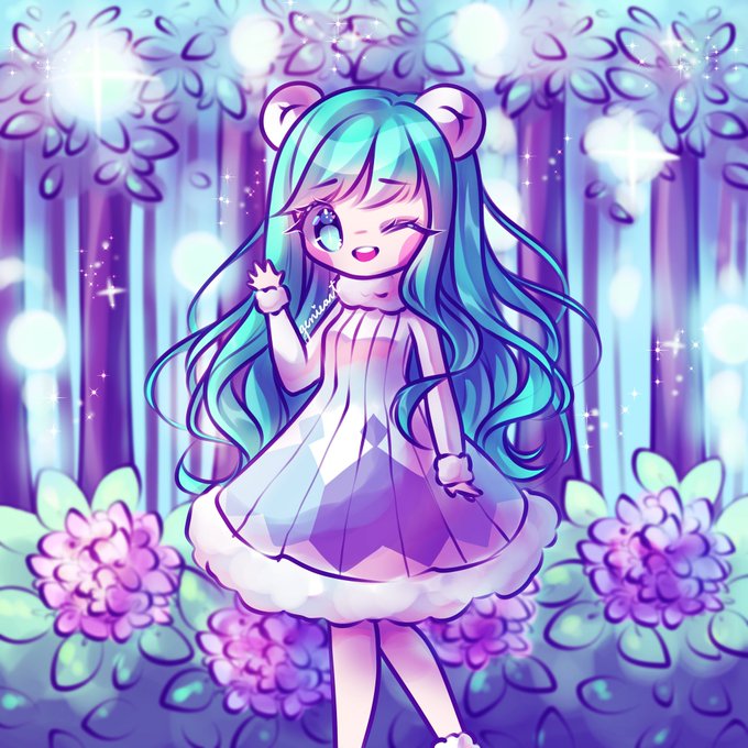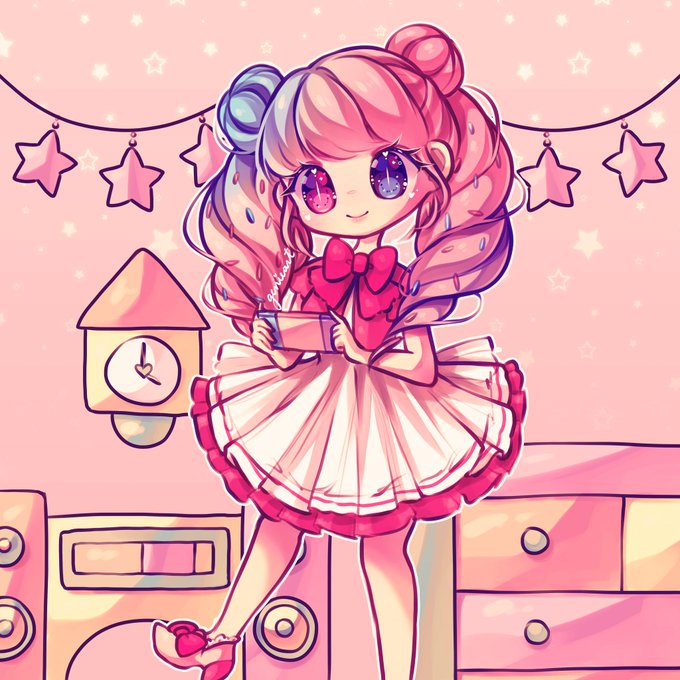 Flora gijinka I drew in IG stream last night! She is the first “dream” villager I got to live on my island~ she’s saying “Pinky!” My plan is to have only pink villagers huehue 💕💖