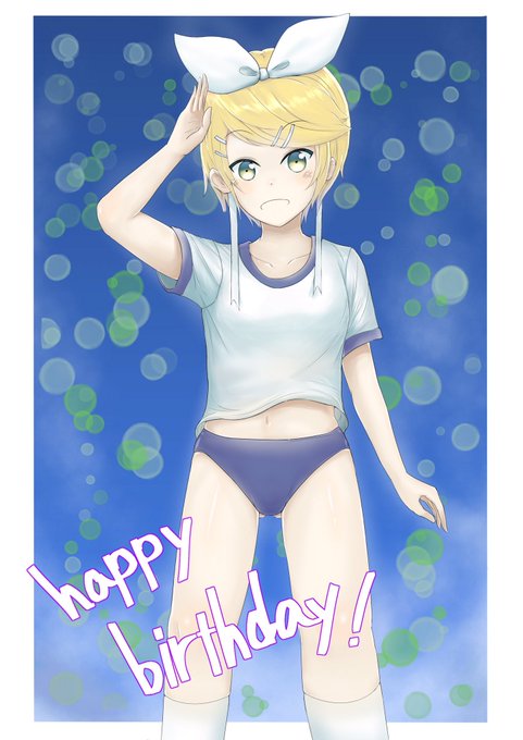 #鏡音誕生祭2016 9歳おめでとう!! へそチラリンちゃん描いたよ(^ν^)