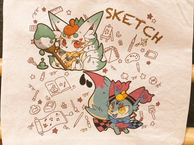 新作のトートバックです!幻獣屋のキャラと一緒にお絵かきシリーズで今回はキュウビと白児をチョイスしました。価格は1500円前後を予定しております