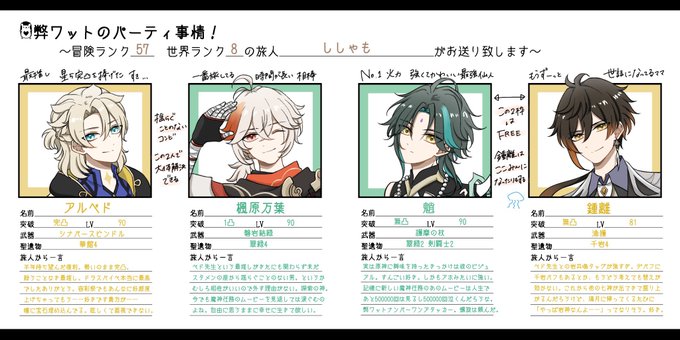 だいぶメンバーが変わったので記録用に作ってみた みんなすきだ〜〜〜〜! #弊ワットのパーティ事情