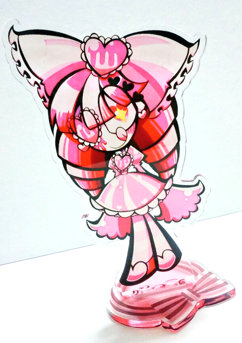 ポップちゃん、ナナナちゃんに続いてラブリーナちゃんアクリルスタンドも頒布します~!! 当日スペースのミニお立ち台に3人並んでるので是非見てみてネ! #G_PUNK #関西コミティア #ポップ #甘ロリ