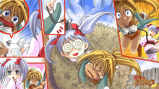 ギャグ補正ばっかりかと思いきや、バトルのイラストでは結構格好良いものが多い。 豪快で躍動的で、野生児相応に血気盛んなのが良い方向に向かったのかなと思う。 『無限のファンタジア』(C)リュリュ/KAPPE、佐々木なの/トミーウォーカー