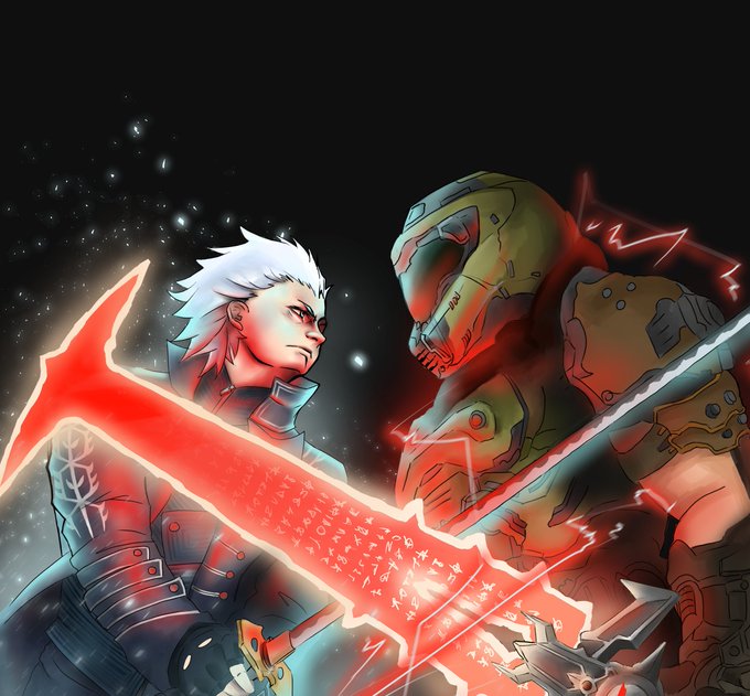 Vergil versus Doomguy - the most intimidating @DevilMayCry spinoff ever created. (Artist: @artbykina)