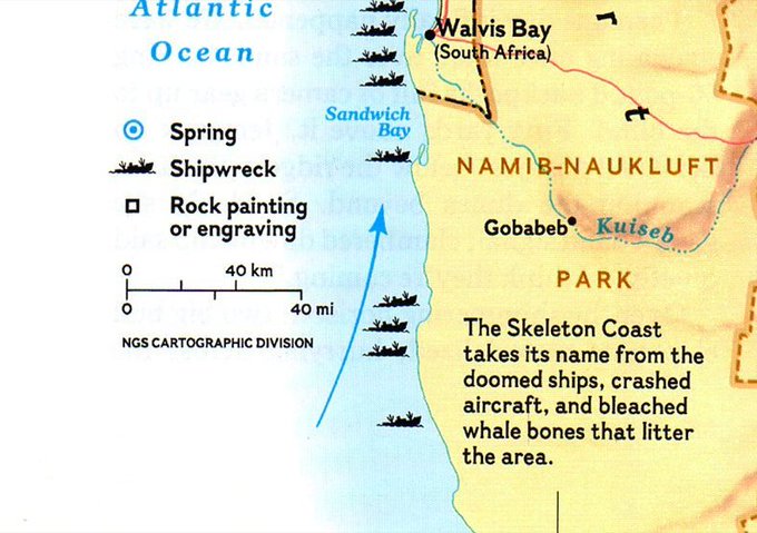In the script, we will mention "Skeleton coast" where colossal sand dunes collide into the ocean, a strange but deadly wonder as TONS of shipwrecks off the shores are due to jagged rocks and dangerous navigating conditions.
