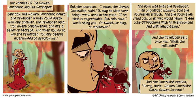 The Parable of the Games Journalist and the Developer. (from Penny Arcade)