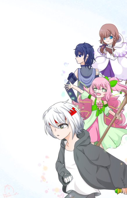 @sousakuTL うちの子の多分代表的な3人組と4人組。過去絵だけど。わちゃわちゃしてるのが好き(結論)