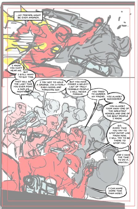 From Nightwing #91: one of the most challenging panels I´ve done in my career. Kudos to @TomTaylorMade for challenging me, to @fxstudiocolor who provided depth playing with values and to Wes Abbott who found the best way to design the balloons
