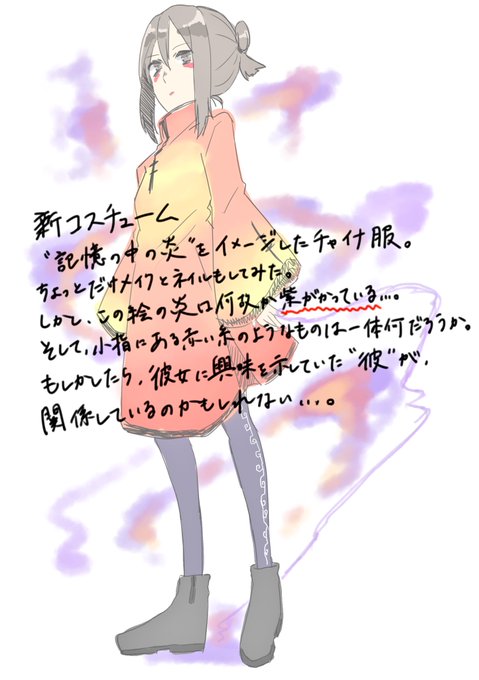 蒼羽ちゃんの新コスチューム。2枚目に説明有り。 ディスコで私の創作の話を聞いた人なら説明の意味がわかると思います。