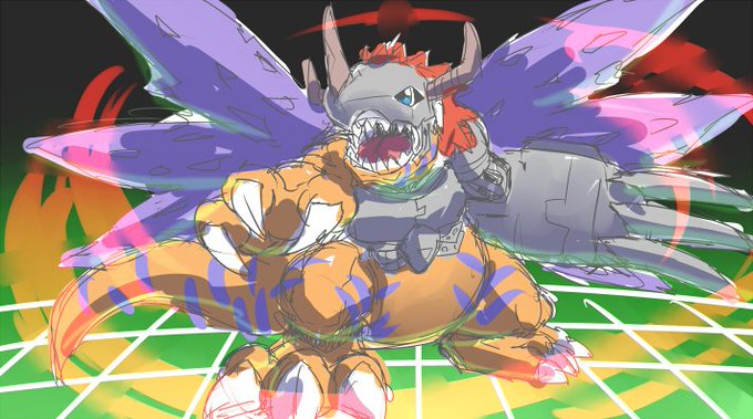 ちなみに、今回いただいた依頼は「カッコイイメタルグレイモン!進化シーンをイメージした物がいいです!」との事でした。そこからカラーラフを3点提出して、どれがいいかを選んでいただきました~