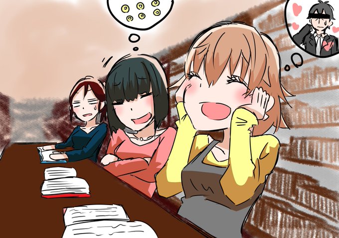 恋愛小説を読んで妄想がはかどる日菜子ちゃんと歴史小説を読んで妄想がはかどる仁美ちゃんとちょっと引いてる穂乃香ちゃん