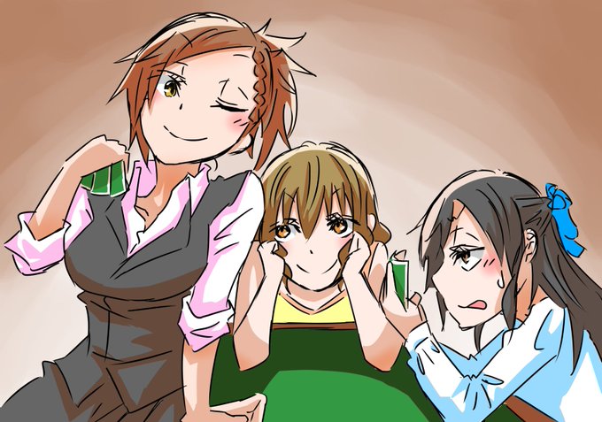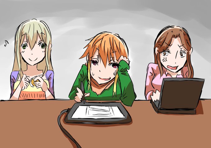 冬コミの進捗ギリな飛鳥ちゃんとルンルンでお手伝いする琴歌さんとキレながらも手伝ってくれる時子姐さん
